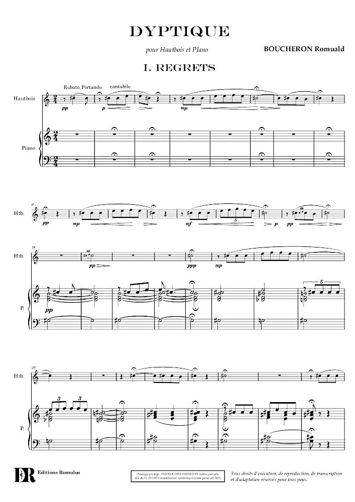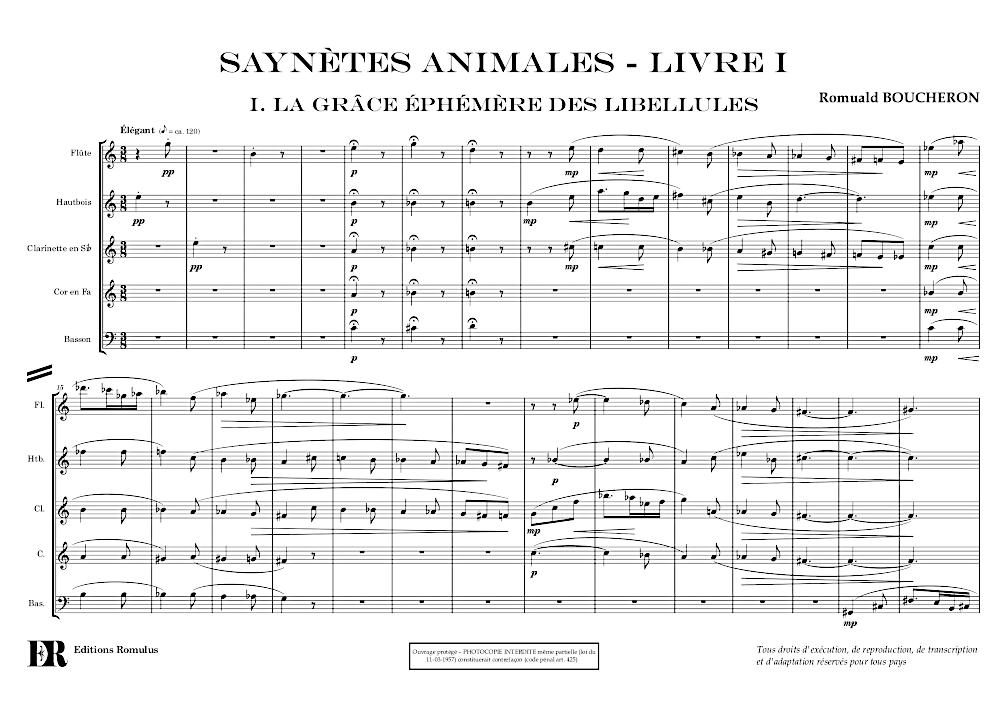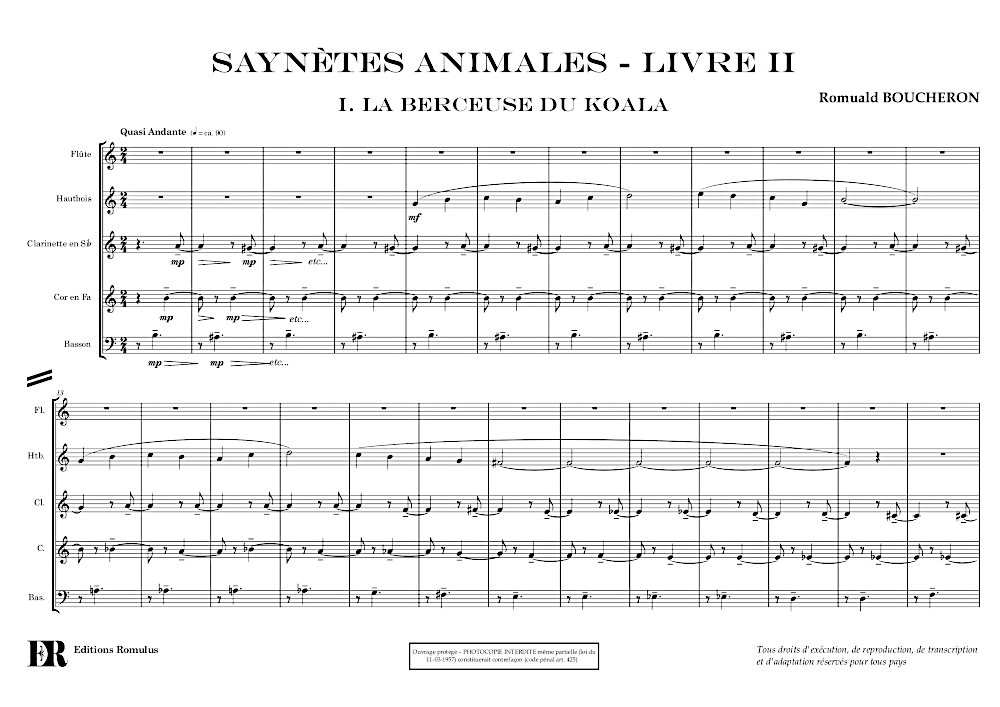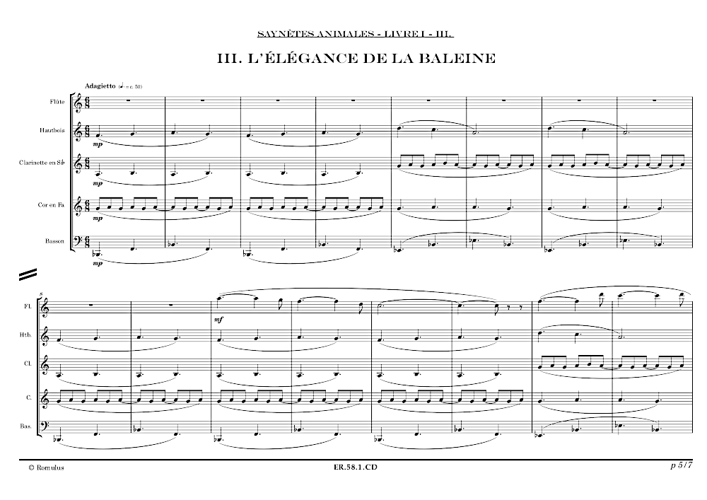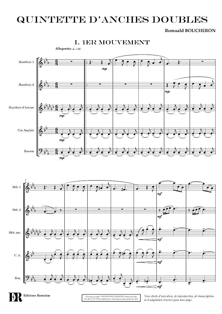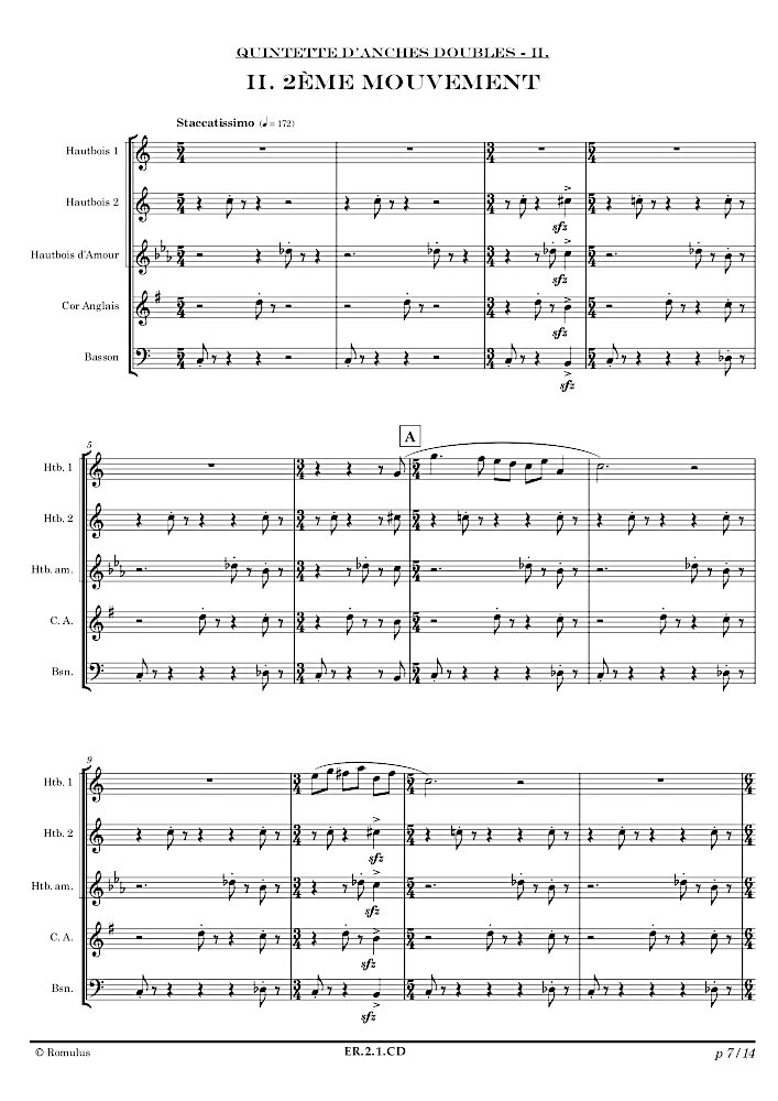 Quintette en 2 mouvements pour 2 hautbois, hautbois d’amour, cor anglais et basson.