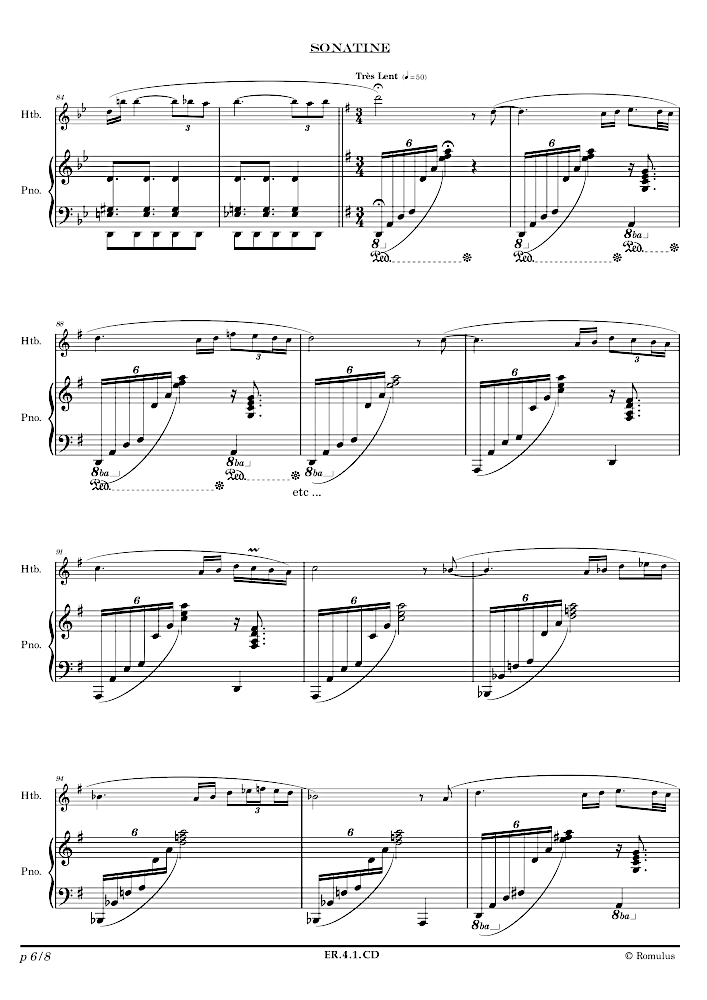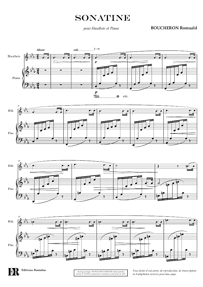 Sonatine en 1 seul mouvement. Une version pour hautbois et piano existe également.