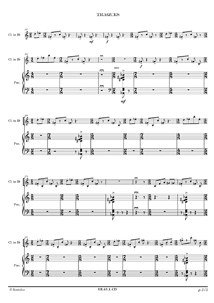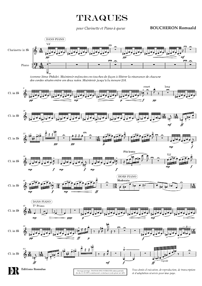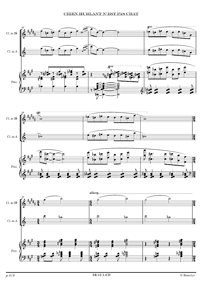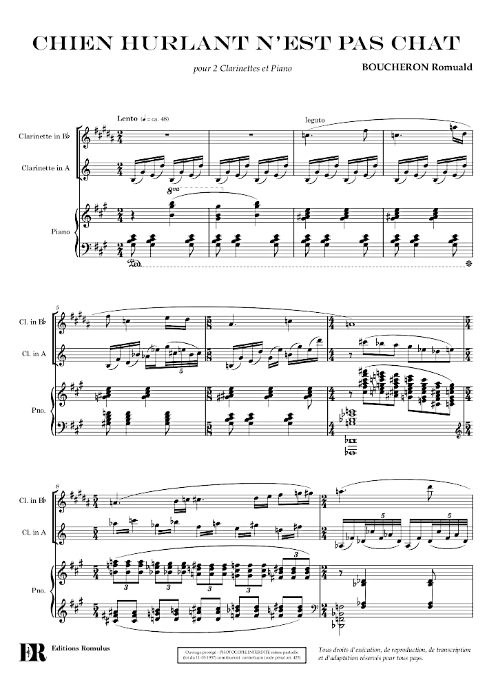 Pièce en 1 seul mouvement pour 2 clarinettes (A et Bb) et piano.