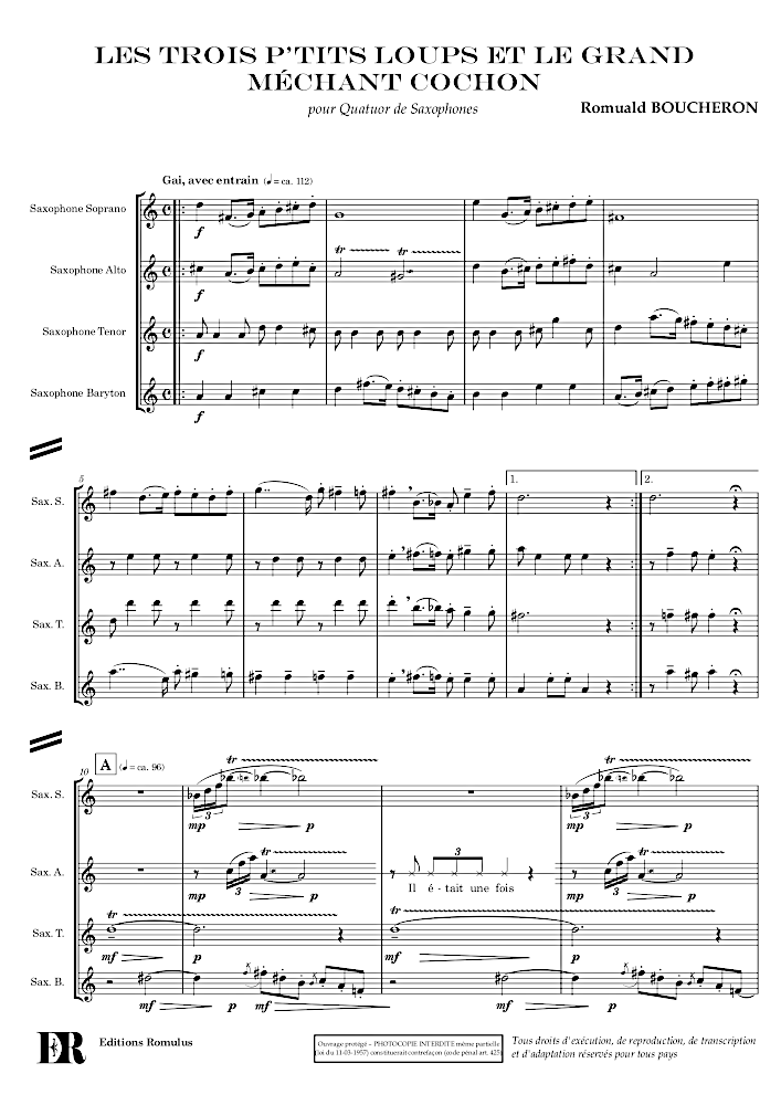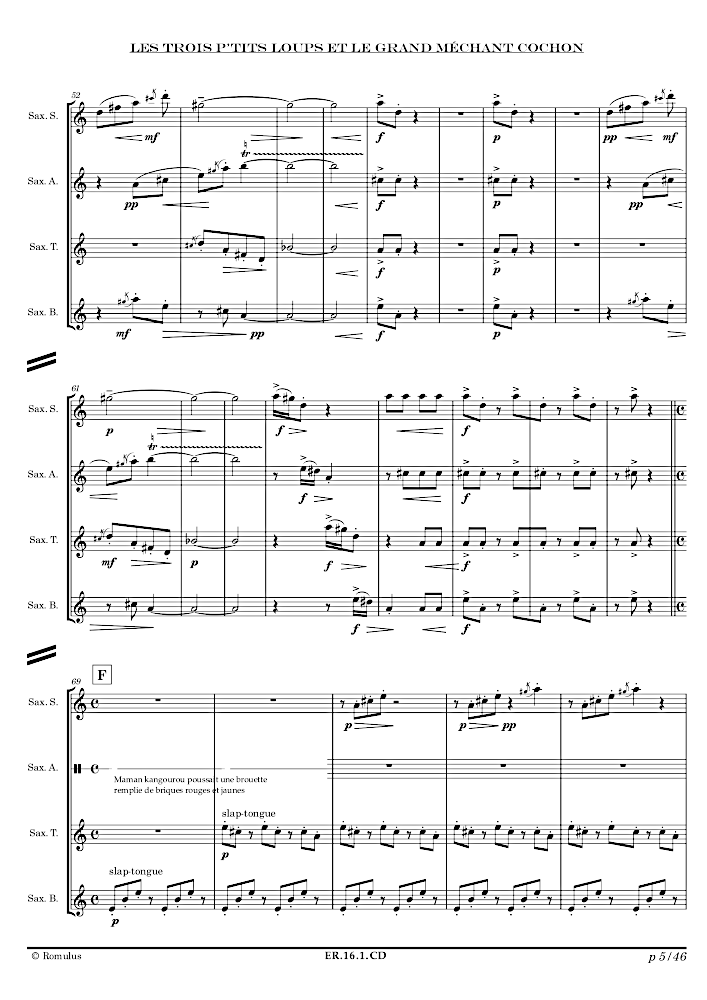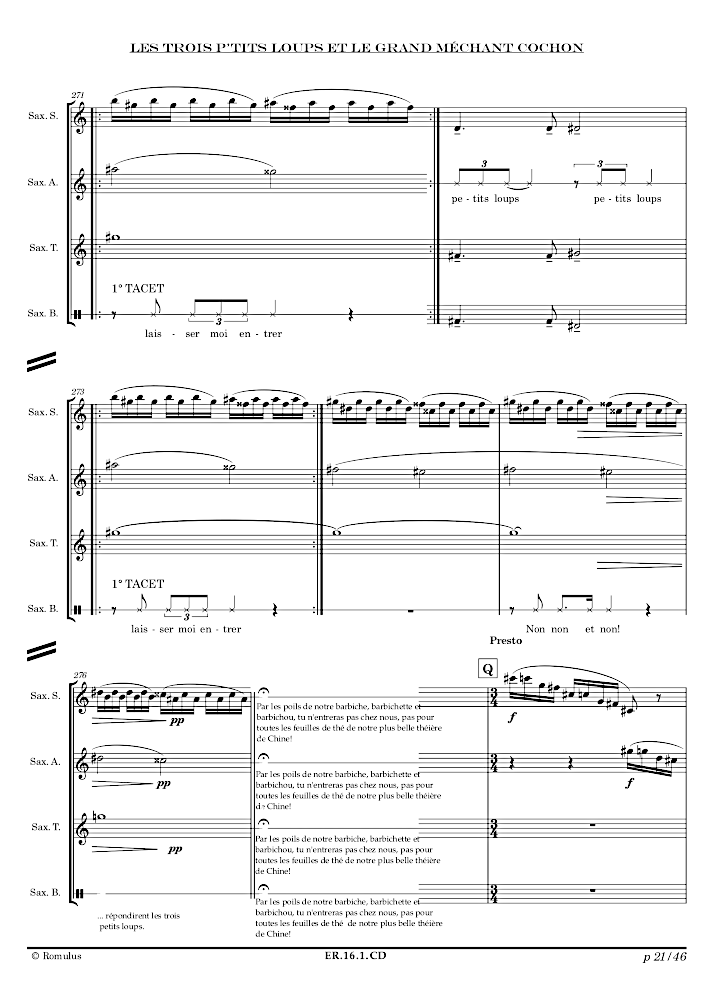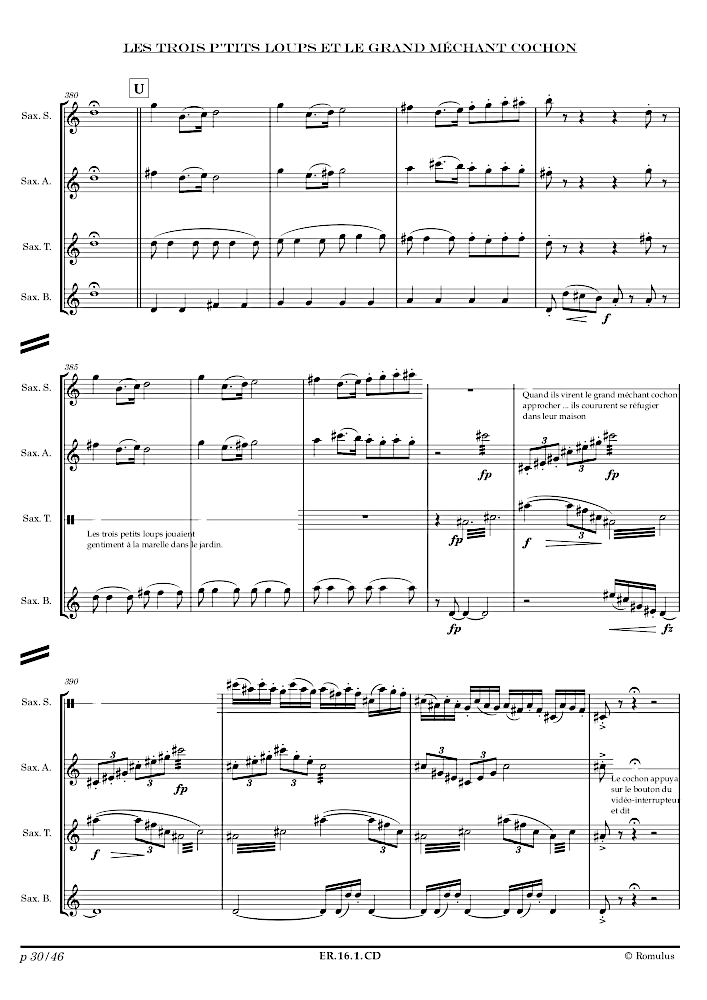 Quatuor de saxophones autour de la fameuse histoire un peu détournée …