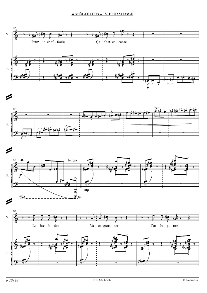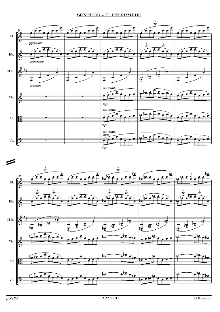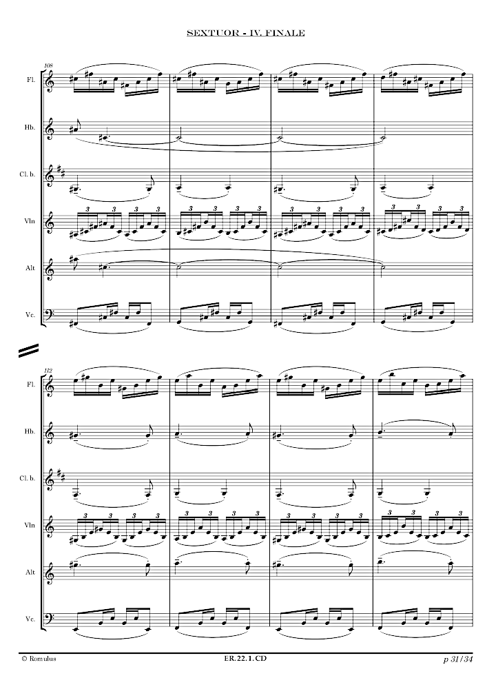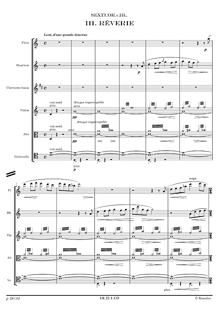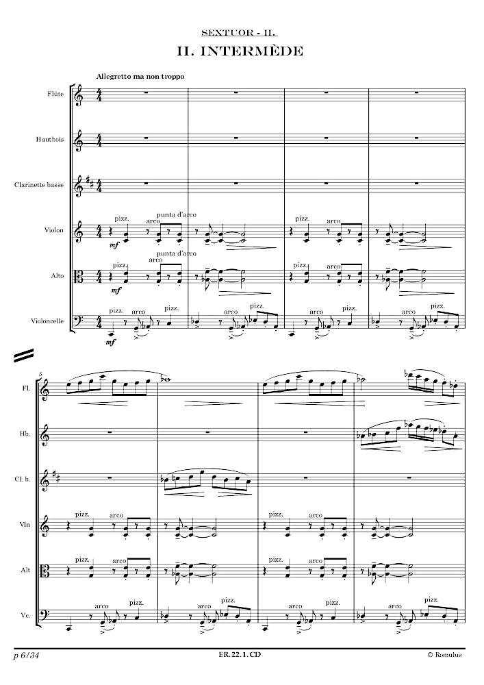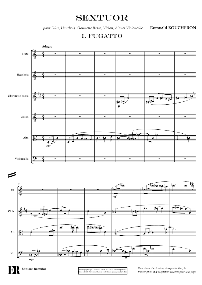 Pièce en 4 mouvements pour Flûte, Hautbois, Clarinette basse, Violon, Alto et Violoncelle.