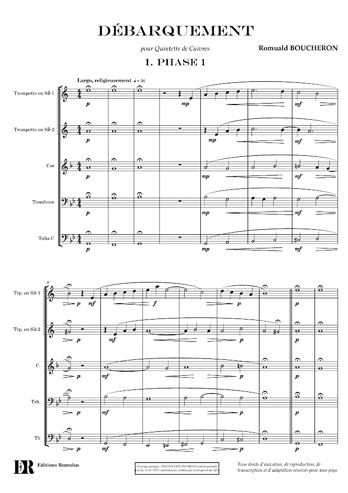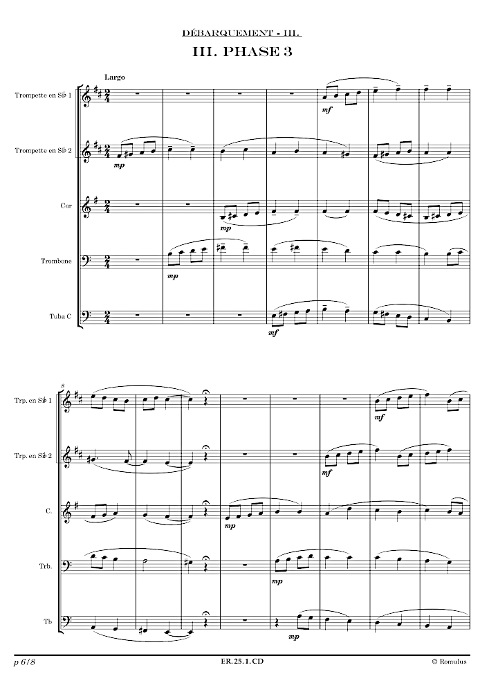 3 petites pièces faciles pour quintette de cuivre, composée pour un documentaire sur le débarquement de Normandie.