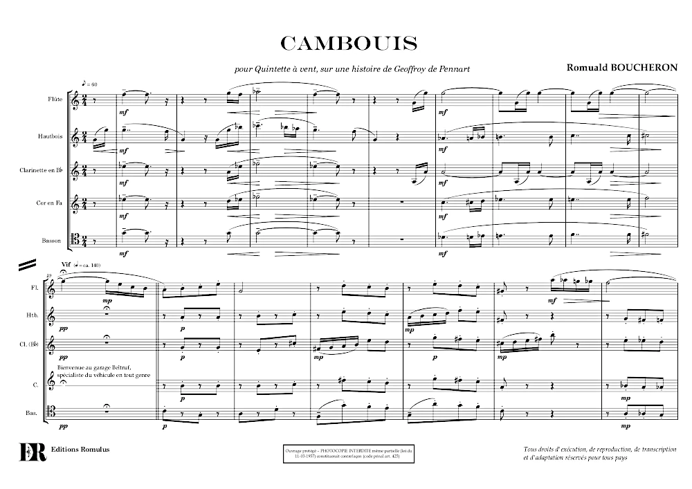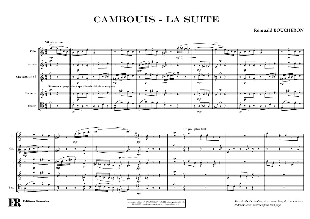 Suite extraite de la pièce complète « Cambouis », pour quintette à vent.