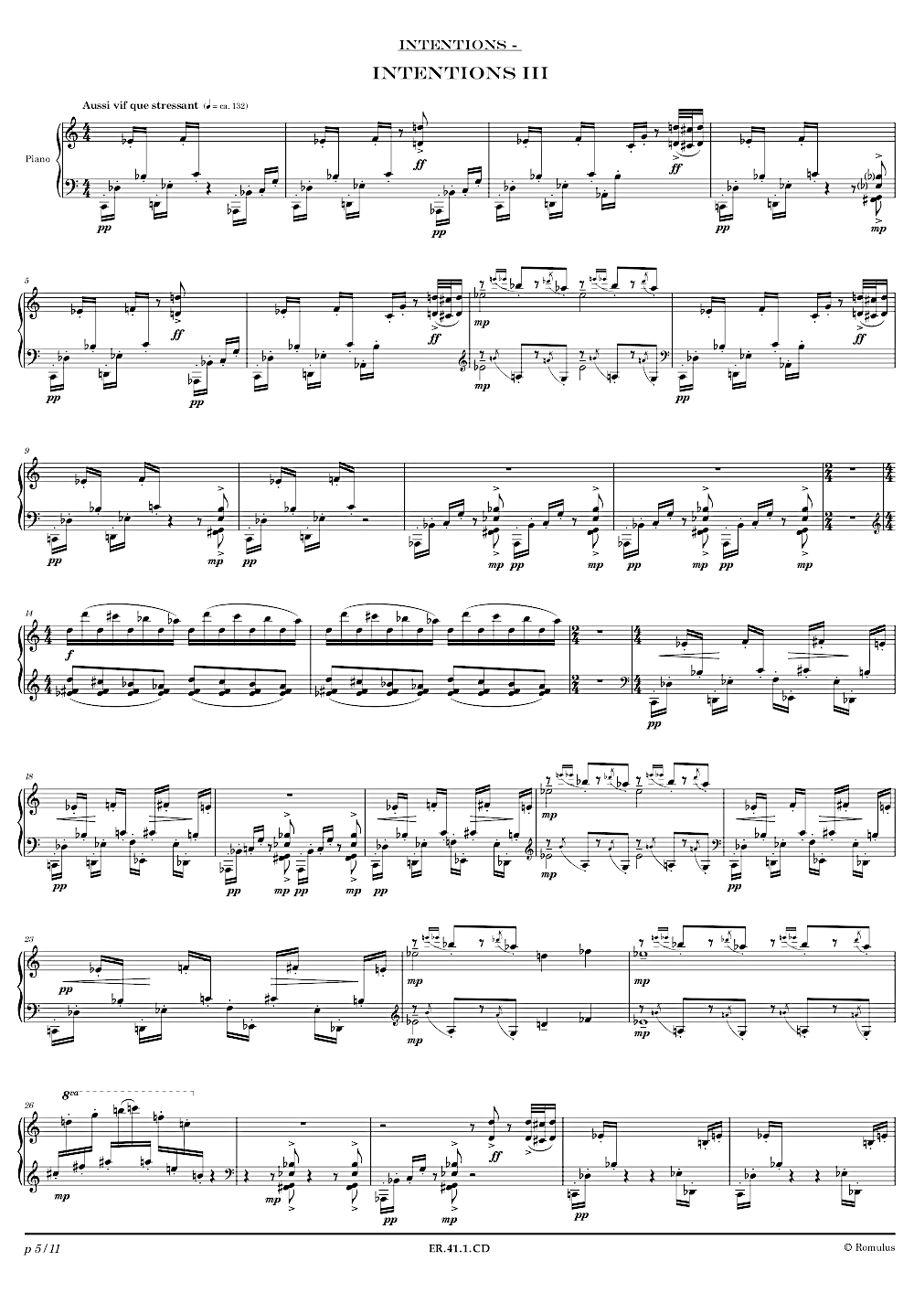 Pièce en un seul mouvement pour Hautbois, Basson, Marimba, Violon et Violoncelle.