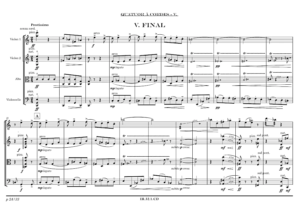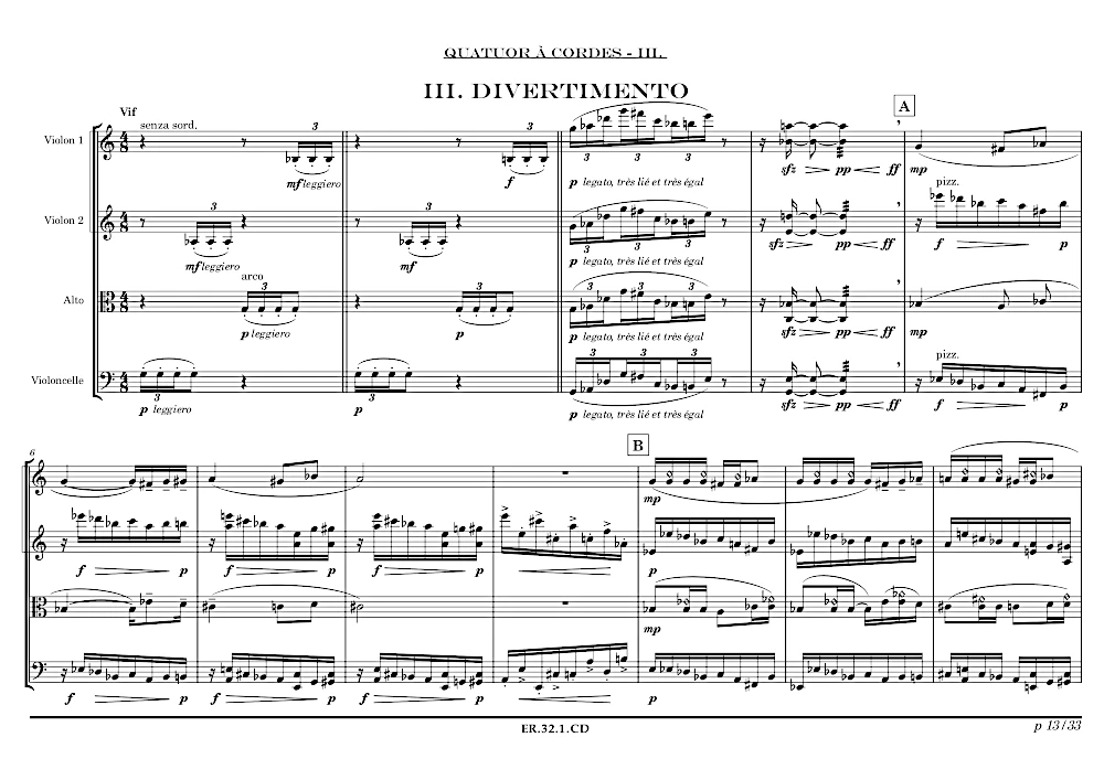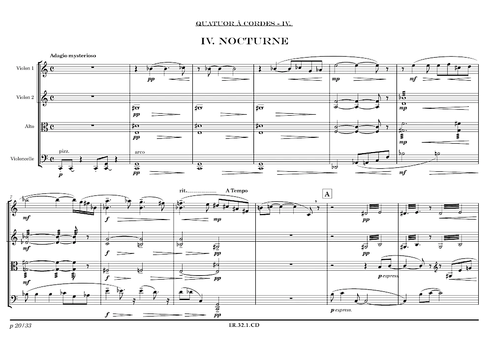 Quatuor à cordes en seul mouvement.